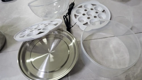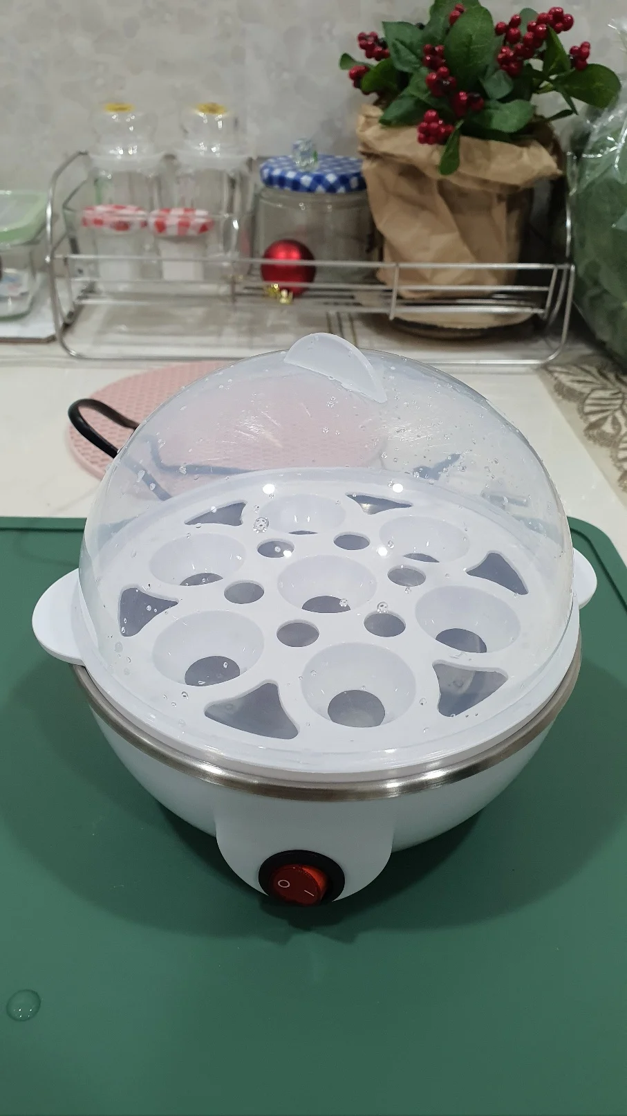 I ordered it out of curiosity because it would be easy to prepare a meal of news for one person. The real thing is that the plastic material is thin, and I really thought it would be food, it is very small and cute like a small play toy. Curiously, I worked on a polishing agent and tested two eggs, if the water boils away, the power is cut off, I didn't control the time, but I did something else for a while, so the power switch was off, and I checked the eggs, it's very well cooked in a short time ^ ^, next time you can steam the rice cake in the freezer, I'm thinking of trying some egg steamed. Anyway, it's very funny. I'm a little worried because it's plastic, but I'll use it well.